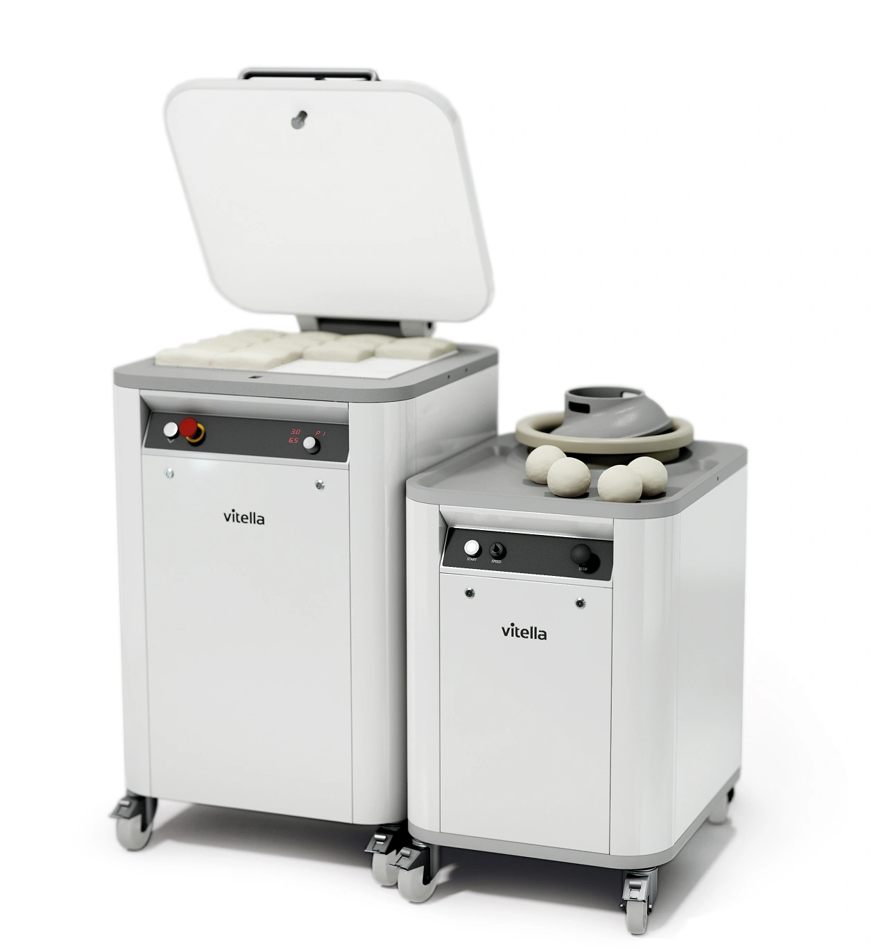 Utilizzata in panifici e pizzerie, questa macchina arrotonda le porzioni d’impasto già divise dalla spezzatrice, conferendo loro una forma sferica uniforme.