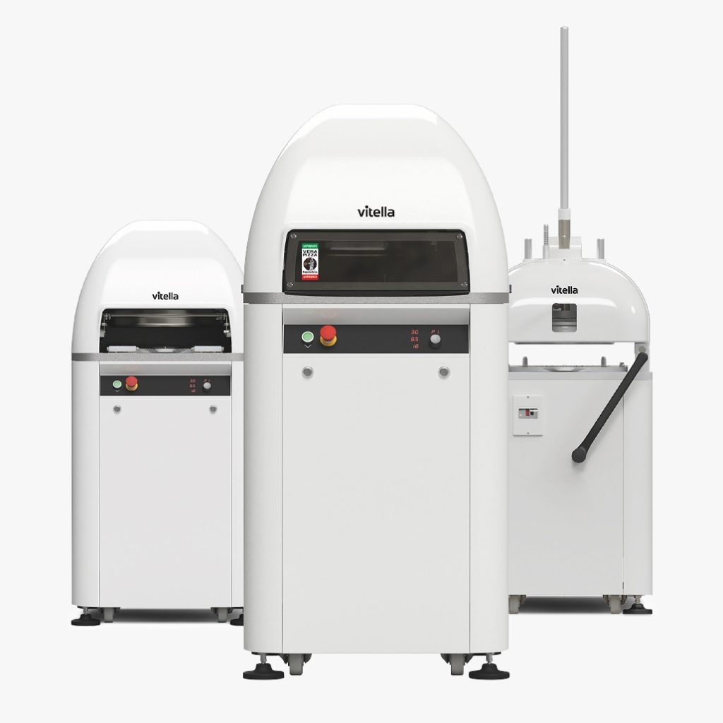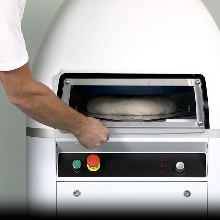 Meccanica e tecnologia insieme consentono di automatizzare e migliorare la qualità del lavoro, riducendo il tempo e lo sforzo richiesti nella divisione e nell’arrotondamento dell’impasto.